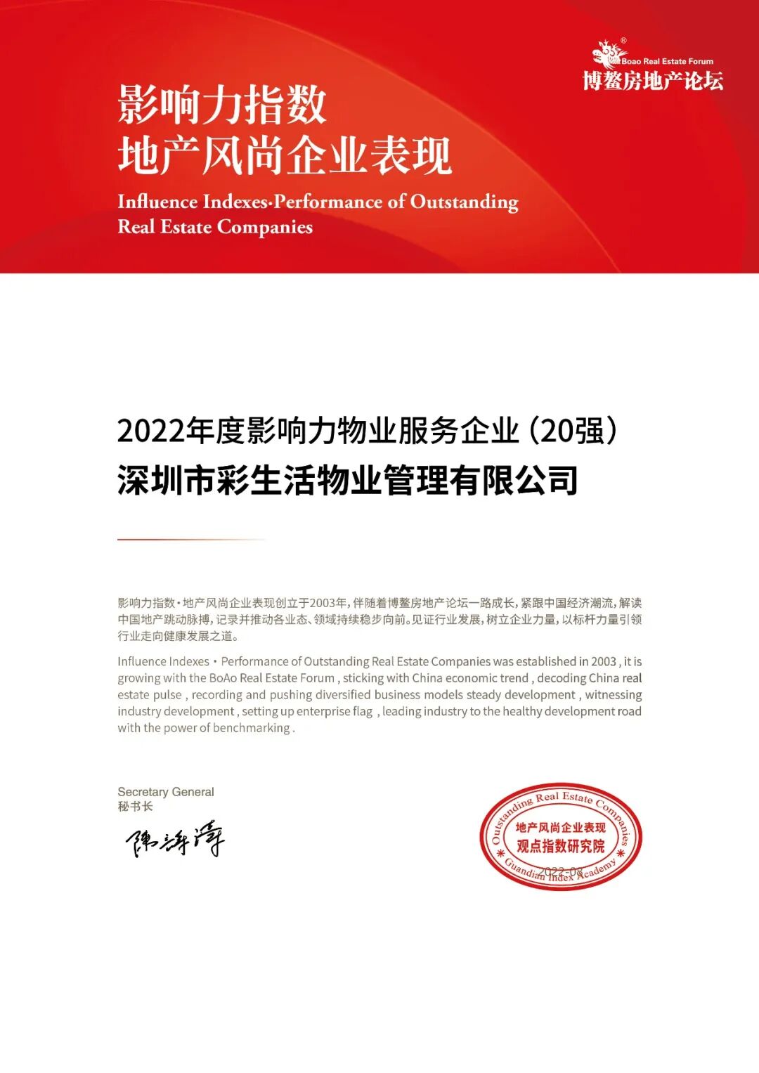 櫛風沐雨二十載,彩生活一路帶著不斷突破的勇氣和信念,以積微成著、篤行致遠之勢,實現把社區服務做到家的承諾。此次入選“地產風尚企業表現”年度影響力榜單,不僅體現了行業各界對彩生活二十載勤耕不輟的認可,同時,也彰顯了彩生活在行業的榜樣力量。