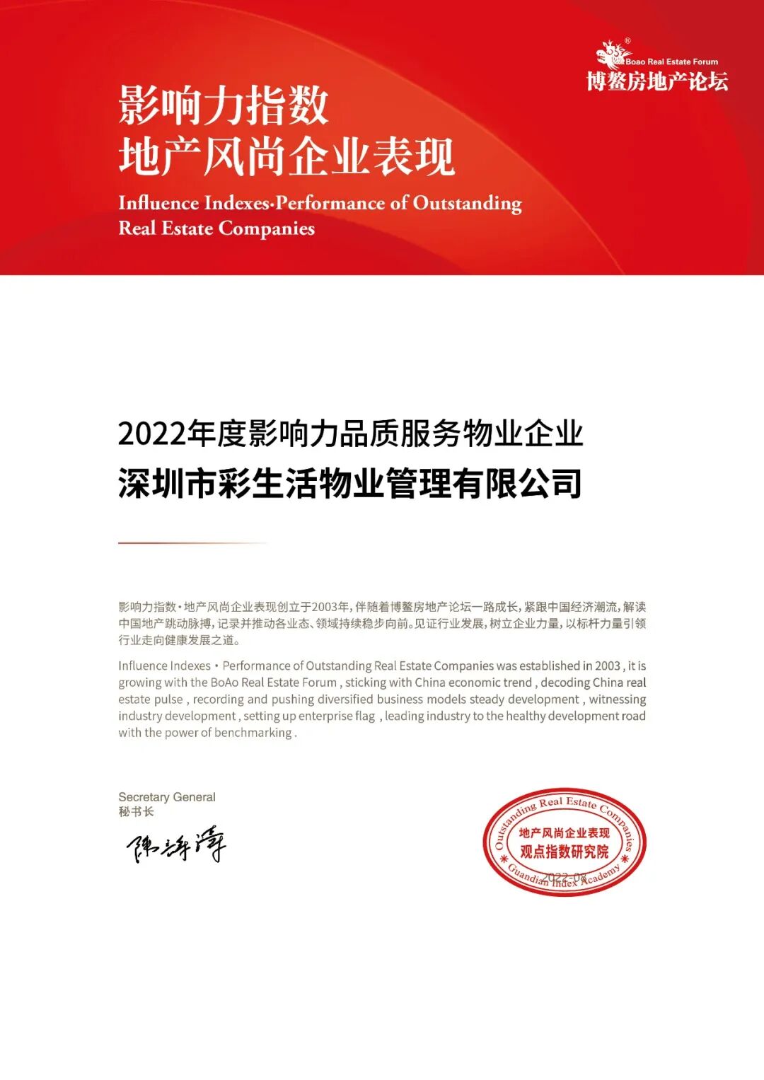 榮譽加冕,踔厲奮發。未來,彩生活將積極迎接行業發展的新變化、新挑戰,不斷煥新服務品質、提升客戶體驗,用實際行動詮釋“把社區服務做到家”的初心。