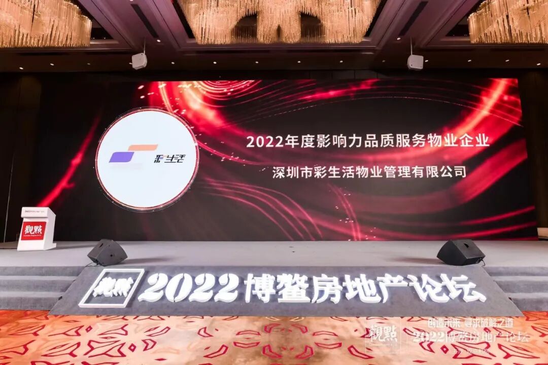 “影響力指數2022年度地產風尚企業表現”發佈儀式現場,彩生活蟬聯“2022年度影響力物業服務企業”“2022年度影響力品質服務企業”,據主辦方介紹,該獎項旨在表彰兼具服務的品質、口碑與信譽的物業服務企業。